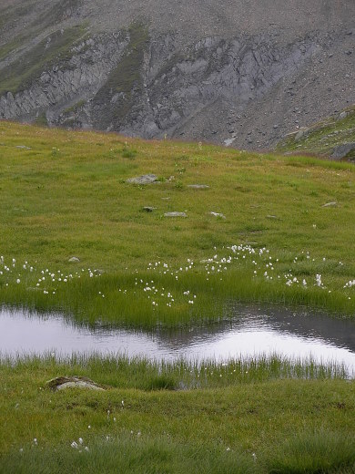 28.08.2012: Abstieg weiter durchs Lengtal, vorbei an vielen Wasserläufen mit Wollgras. - Kräftig grüne Weiden, - vor Fülhorn und Merezenbachschije . | ||||||||||||||||||||||||||||||||||||||||||||||||||||||||||||||||||||||||||||||||||||||||||||||||||||||||