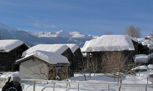 12.01.2013: Wir hatten übersehen, dass Samstags der 17-Uhr - Bus nicht fährt, ab er ein freundlicher Mann nimmt uns mit hinunter nach Visp . |
