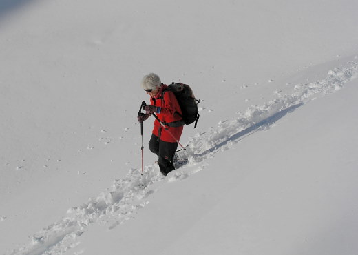 12.01.2013: Wir umgehen die steilen Stellen vom Strässchen, später leuchtende Hagebutten . | |