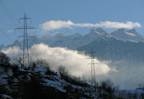 28.01.2013: Im Süden Balfrin, Färichhorn. * manchmal verschandeln Strommasten nicht die Natur , | |