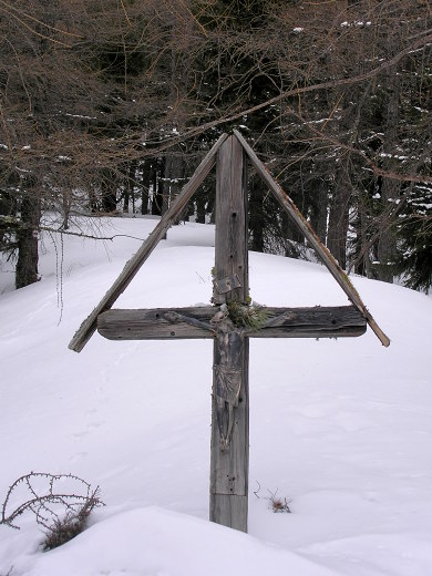 29.01.2013: Holzrigg-Kreuz , hier zweigt der Pfad hinauf zum Arbol ab. * Heute schon ab Leiggern tief verschneit und ohne Spuren . * Da das Wtter immer schlechter wird, kehre ich bei knapp 2000 m um . | |