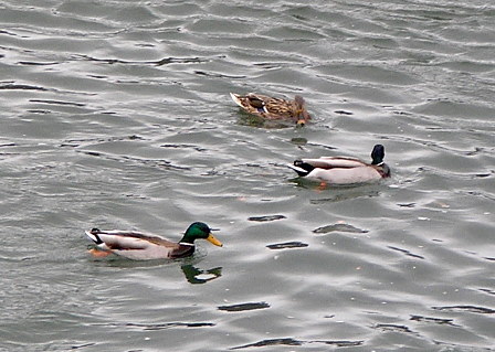 02.02.2013: Es ist stürmisch, aber micht sehr kalt. Das gefällt den Wildenten, die in der Rhone bei der Baltschieder-Brücke herum schwimmen . |