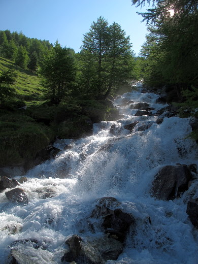 05.07.2013: Viel Wasser kommt vom Fellbach und anderen Bächen bei Saas Balen . |