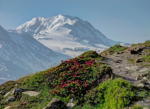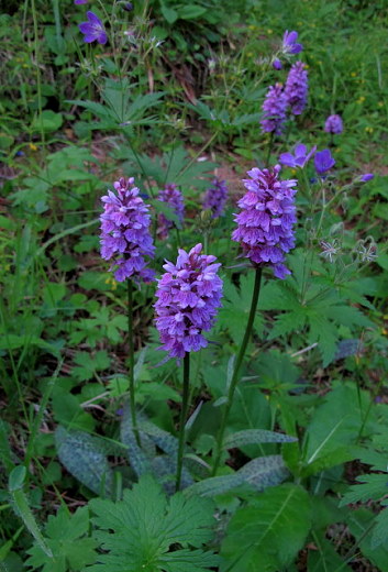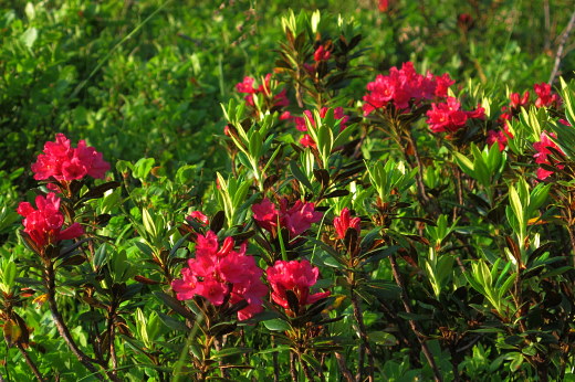 12.07.2013:   Knabenkraut   und Alpenrosen  blühen am Weg. |