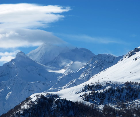 06.02.2014: <- Brunegghorn , Bishorn und Weisshorn. -> Fletschhorn, Laggin, Weissmies . | |