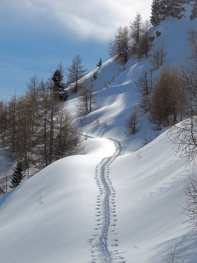 06.02.2014: Oberhalb von der Moosalp: einsame Skispur Richtung Törbeltälli. |