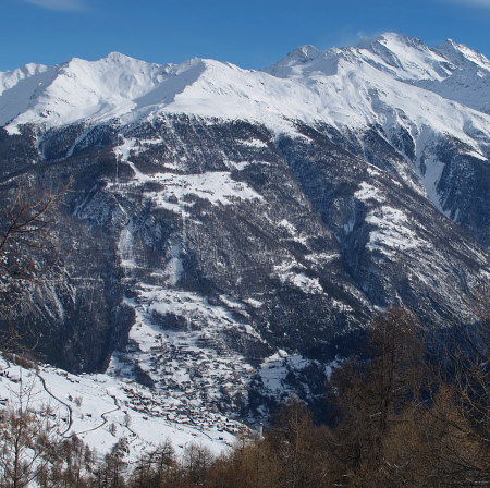 06.02.2014: Blick hinunter auf Törbel, Staldenried und Gspon, darüber Wyssgrat und Galenhorn | |