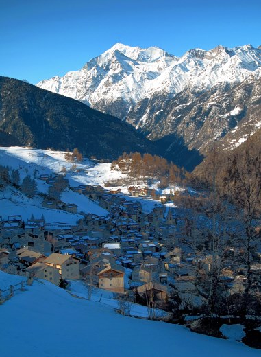 13.03.2014: Morgendliches Bietschhorn von Visperterminen aus, und dann kommt die Sonne auch nach Visperterminen . |