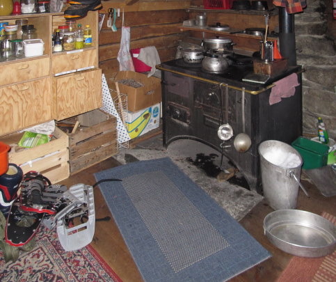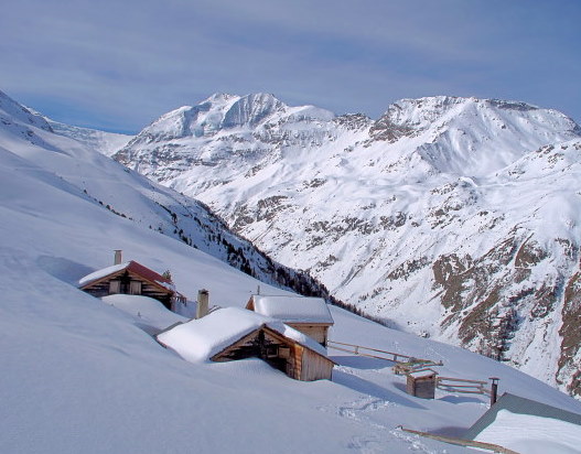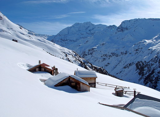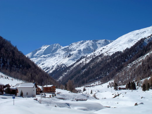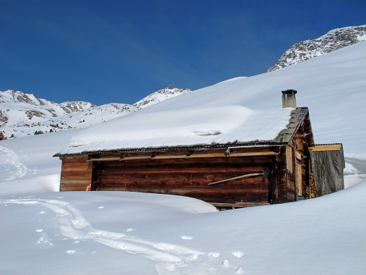 Die Wettervorhersage war gut, Lawinensituatin *mässig*, und Rosmarie war *Anna-frei*. * So wollen wir in diesem Frühling endlich mal wieder auf unser Brändji-Oberstafel (2297 m) im Turtmanntal laufen. 28.03. : Mit früher Bahn, Bus und Seilbahn nach Oberems. * Bald nach dem Dorf können wir unsere Schneeschuhe anlegen, gut gespurt bis Gruben, dann gibt es für uns viel *Arbeit*. Über der Waldgrenze ist der Neuschnee der letzten Tage noch nicht umgesetzt: -> In steilen Traversen mühsames Spuren. Sonne und Wind hatten den Hütteneingang frei gemacht, bald wärmt drinnen das Herdfeuer. * 29.03. : Heute nehmen wir es gemütlicher. Als die Sonne auch zu uns kommt, legen wir wieder die Schneeschuhe an und laufen über unberührtem Schnee nach Süden, das Strässchen ist total zugeschneit. * 30.03. : Solange unsere alten Spuren noch hart gefroren sind, machen wir uns über Hungerli_Mittelstafel auf den Rückweg hinunter ins Tal. Bis nach Gruben hat es nur wenig mehr Spuren als am 28.03. Später treffen wir einen kräftigen Tourengänger aus Spanien. Es wird langsam warm, trotz Schleierwolken. Dann bühen am Strassenrand Pestwurz und vor Oberems Lichtblumen, unterhalb vom Dorf sind die Wiesen davon ganz violett. Der freundliche Spanier nimmt uns im Auto mit hinunter bis zum Bahnhof Turtmann. * An diesen 3 Tagen waren wir allein auf dieser unberührten Seite vom Turtmanntal, am 29.03. erkannten wir Skispuren: 1. : auf dem Turtmanngletscher hinauf zur Tracuithütte, 2. : aus dem Frilitälli hinunter zum Stausee, 3. : aus dem Meidtälli oberhalb vom Meid_Oberstafel gequert zum Kalten_Berg_Alpsträsschen ins Tal und (?) zur Turtmannhütte |