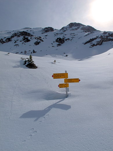 29.03.2014: Zur Zeit interessieren sich nur die Wildtiere für den Wegweiser am Brändjibach. * Kleine Wanderung vom Brändji nach Süden, vorbei an der Wasserfassung. | |