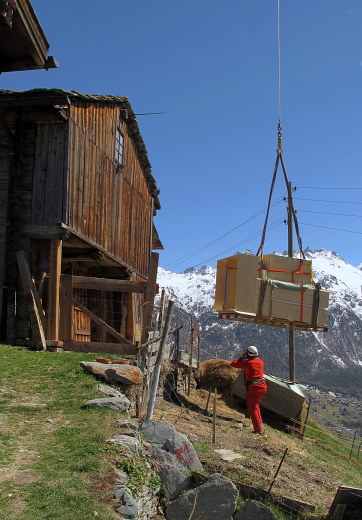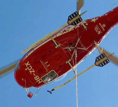 15.04.2014: Am Nachmittag kommt der Heli zu uns , * der Föhn wind drückt auf die Ladung, über Spiegel und Bodenfenster beobachtet es der Helipilot, der Flughelfer gibt vom Boden aus Anweisungen. Endlich steht die Ladung sicher auf der einzigen flachen Stelle vor der Hütte ab. | ||||||||||||||||||||||||||||||||||||||||||||||||||||||||||||||||||||||||||||||||||||||||||||||||||||||||