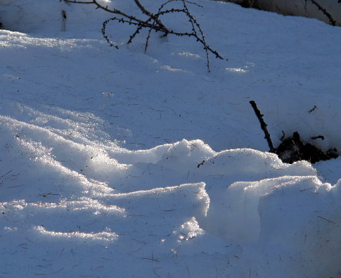 13.03.2015: Ein Schneehase ? Flechten am sonnigen Lärchenstamm. |