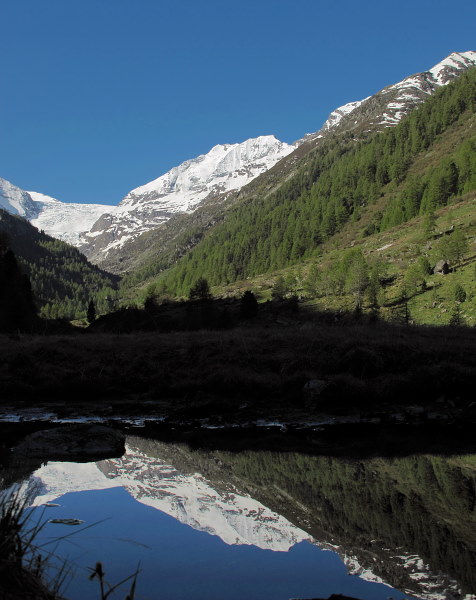 03.06.2015: Das Bustaxi von Oberems bringt uns wieder bis zum spiegelglatten Brändjisee (1890 m) Am Morgen ist es noch angenehm frisch . | |