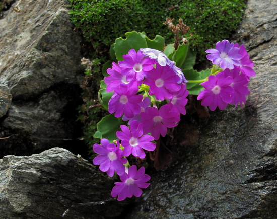 03.06.2015: An den Felsen über dem Stausee: - Felsprimeln und Gletscher Hahnenfuss . | |