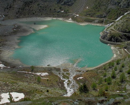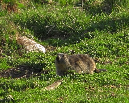 03.06.2015: Junge Murmeltiere in der Nachmittagssonne, südlich vom Brunnen, die Rotschwänzchen brüten wieder in der Nähe, * <- Türkisfarben leuchtet der Turtmann-Stausee, vor 1 Woche war er noch teilweise gefronen . | |