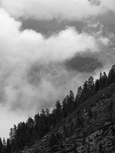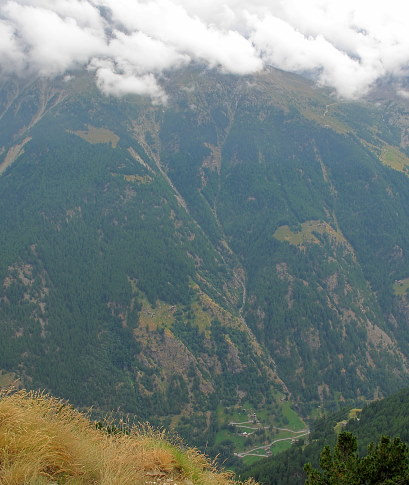 23.07.2015: Als wir von Hannigalp nach Grächen absteigen,  kommt die Sonne hervor. -> * Mit dem Bus hinunter nach St. Niklaus, mit der Bahn nach Visp. |