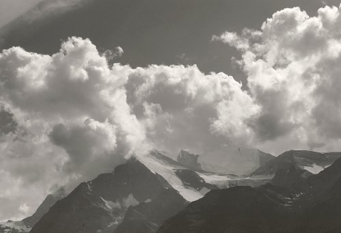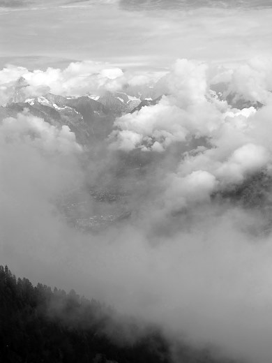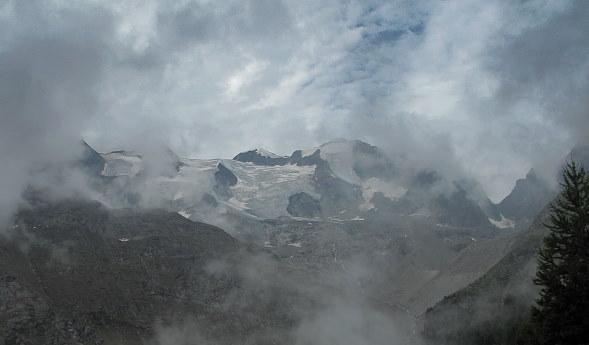 23.07.2015: Nur für einen Moment wird der Balfrin sichtbar, -> im Norden, über dem Rhonetal, hat es schon weniger  Wolken. |