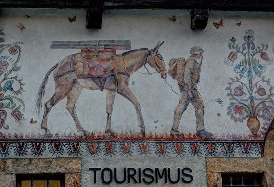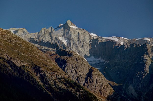 24.09.2016: Als ich aus dem Bus aussteige, liegt der Dorfplatz von Ernen noch im Schatten, meinen Rucksack trägt mir (heute) kein Maultier. * <- Gross Wannenhorn in der Morgensonne . |