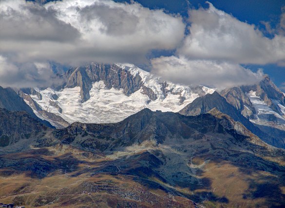 24.09.2016: Aussicht vom Eggerhorn: Das Finsteraarhorn hat einen Wolkenhut. * Im Süden Schinhorn , Helsenhorn. | |