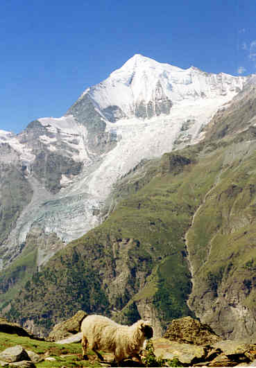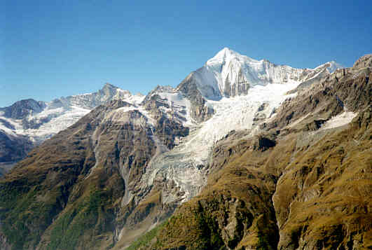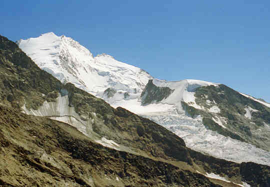 August 1989: von unterhalb der Gugla -> Dom und Festigletscher. |