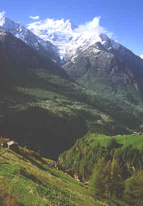 Voralpe Schalb ob Embd /Mattertal -> Riedgletscher, Nadelhorn ("Hüttji" unten Mitte)