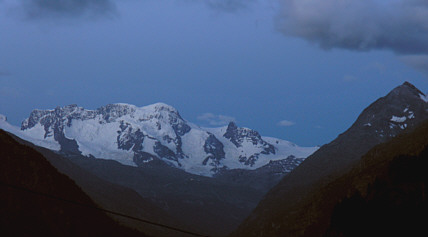 08.07.05: Zermatter Breithorn in der Morgendämmerung vom Hüttji-Fenster aus. Um 05:30 Start ins Augsbordtälli, das bald von der Morgensonne beleuchtet wird. | |||||||||||||||||||||||||||||||||||||||||||||||||||||||||||||||||||||||||||||||||||||||||||||||