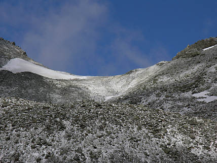 08.07.05: Blick Richtung Osten / Grächen. Die Wolken werden wieder dichter; ab ca. 2500m liegt Neuschnee und die Bäche und Wege tragen eine Eisschicht. | |||||||||||||||||||||||||||||||||||||||||||||||||||||||||||||||||||||||||||||||||||||||||||||||