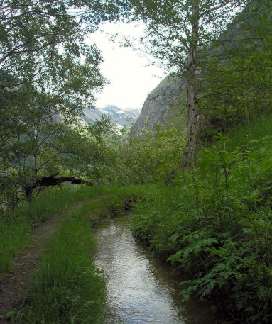02.06.07 : Zurück über die Suone Niwärch ( die jetzt Wasser führt ), nach Ausserberg . |