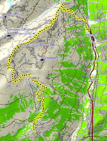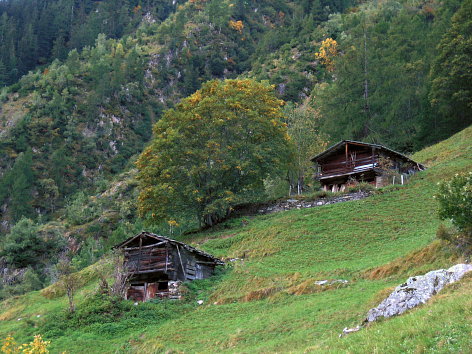 21.09.07: Vom Bahnhof Goppenstein fühert ein steiler Pfad hinauf zur Faldumalp, vorbei an Haselleen ; am Morgen noch im Schatten . | |