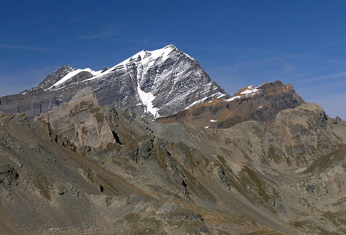 21.09.07: Nordwestseite vom Bietschhorn . Links unten die Bietschhornhütte . | |