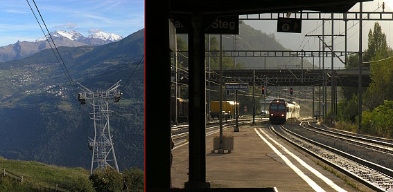 21.09.07: Mit der Seilbahn von Jeitzinen hinunter . In Gampel_Stweg warten wir auf den Zug . | | |
