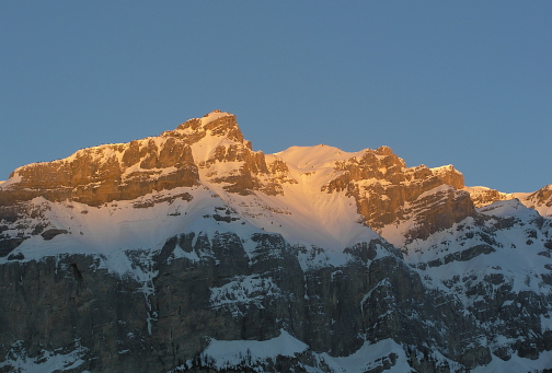 08.02.08: Mit Bahn und Bus hinauf nach Albinen; Die Sonne geht auf über den Leukerbadner Bergen . | |