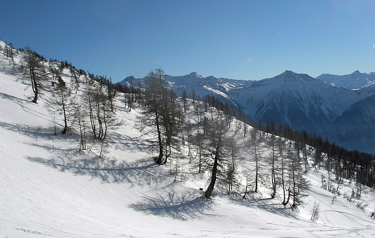 08.02.08: Am Nachmittag bilden die Lärchen kräftige Schatten . | |