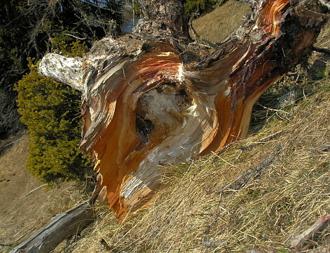 22.02.08: Lärchenstamm unterhalb von Prag . Ueber uns kreist ein Steinadler_Paar . |