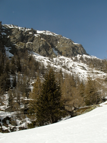22.02.08: Vom Bhf. Raron sind wir zur Rarner Kumme herauf gelaufen, weiter hinauf auf der Südflanke. |
