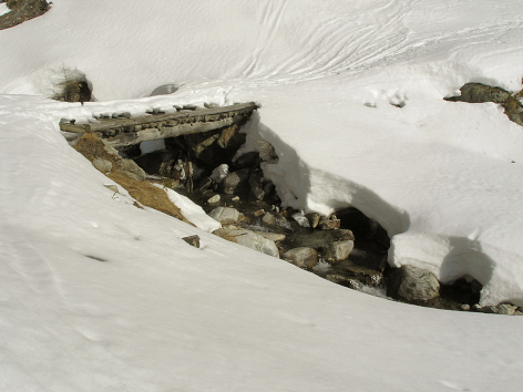 22.02.08: Alte Ski_Spuren bei der Joli_Alp . Hier ist der Schnee schon sehr weich . Weiter unten sind die Wegränder schon trocken . | |