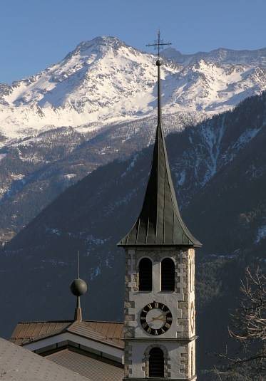24.02.08: Nur noch an flachen Stellen liegt bei Mund Schnee, im Hintergrund das Bortelhorn . |