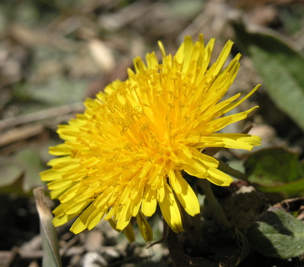 04.04.08: Kleiner Löwnzahn dicht beim schattigen Bach . |