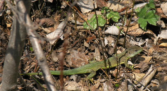 05.04.08: Schon wagen sich Smaragt_Eidechsen an die Frühlingssonne . |