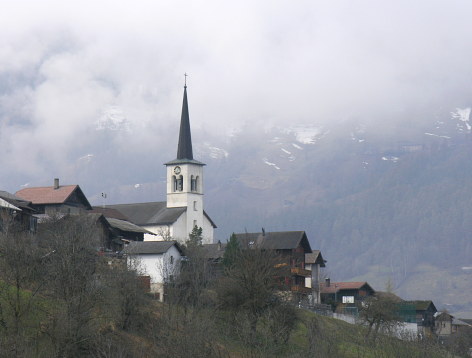 12.04.08: Kirche von Ergisch . So langsam lösen sich die Wolken etwas auf . | |