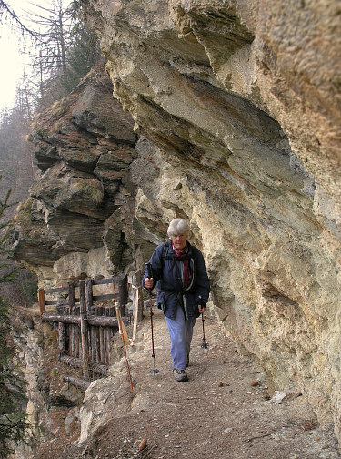 12.04.08: Weiter im Tal liegt Schnee und Eis auf dem Pfad, oben im Wald liegt Neuschnee . Auf dem Bärenpfad laufen wir auf der anderen Talseite nach Unterems. Hier wird es wieder deutlich Frühling. | |