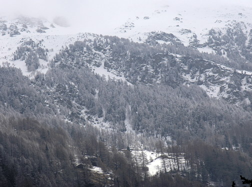 12.04.08: Ueber Nacht hatte es vom Simplon her bis auf ca. 1000m hinunter geschneit. Nach Westen hin lockern sich die Wolken auf. Vom Bhf. Gampel laufen wir durch schattigen Wald hinauf nach Ergisch. | |