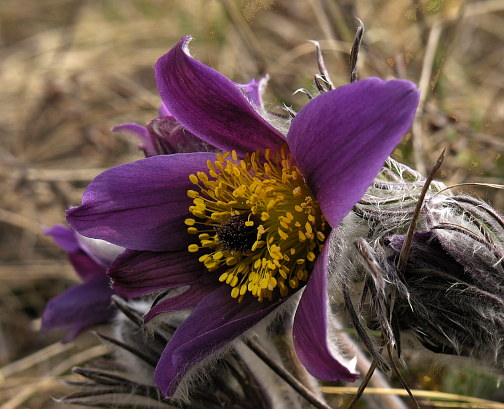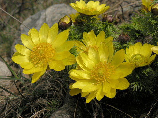 12.04.08: An steilen Hängen blühen schon die ersten Frühlings-Adonis_Röschen; viele Knospen sind noch unter dürrem Gras verborgen . Nur hier und im Unterwallis bei Saxon kann man sie finden . |