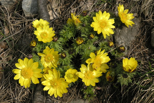 12.04.08: Gampel - Unterems - Adonis_Röschen April-Wetter Fotos: Olympus C-8080 ( GPS-Daten im Exif )