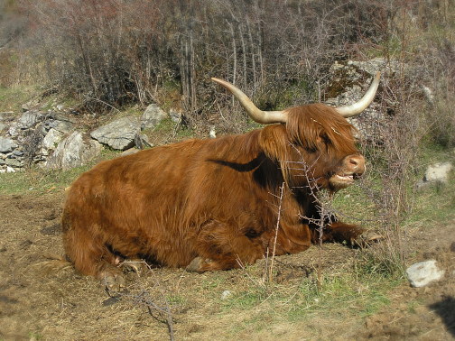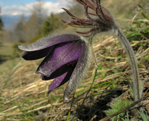 16.04.08: Die Schottischen Hochlandrinder fühlen sich wohl in Erschmatt. Purpur-Anemonen am Weg hinauf zum Weiler Bräntschu / 1541m . |