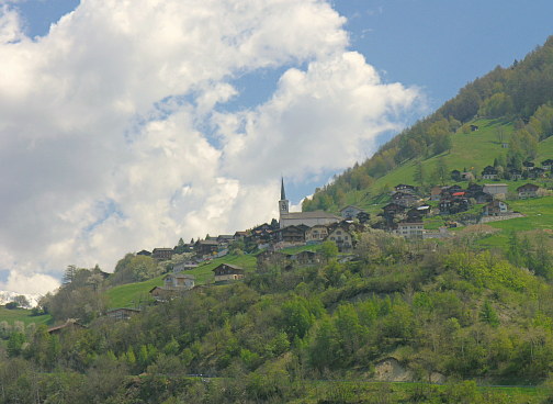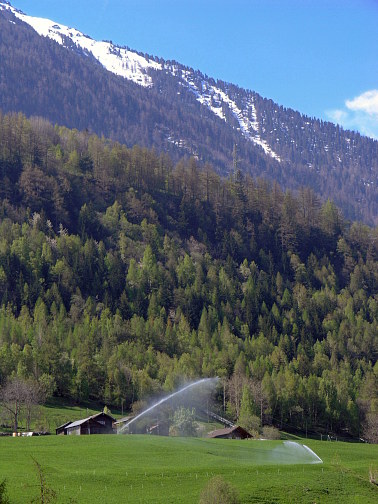 05.05.08: <-- linkes Bild ¦ Die saftigen Wiesen von Unterems werden bewässert. Oben: Blick hinüber nach Ergisch . | |