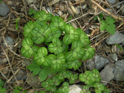 05.05.08: Leberblümchen _Blätter und Brunnen am Weg vor Turtmann . |