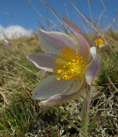 08.06.08: Brändji in der Morgensonne . Morgenspaziergang ins Brändjitälli . Weiter oben trockene Wiesen voller Anemonen . | |