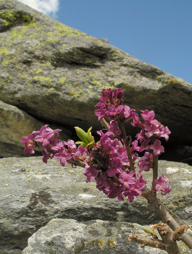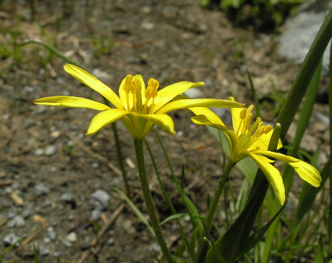 08.06.08: Abstieg zum Hohlu_Stei; -> am Weg blühen Seidelbast. -> und Goldsterne . | |
