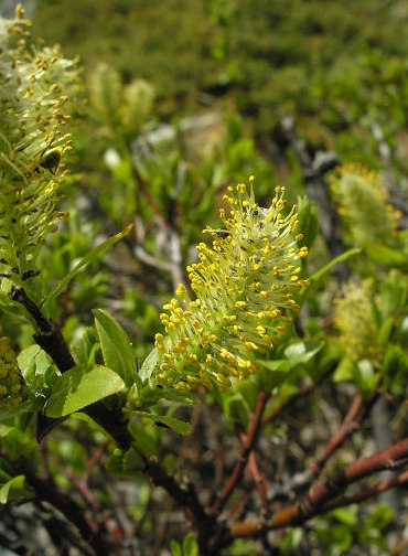 08.06.08: Am Stausee blühen Weiden . Wir blicken hinüber zum Batthorn . | |